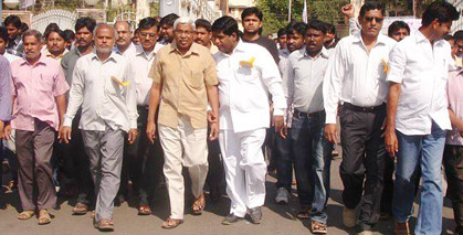 Prof Kodandaram at NIT campus, Warangal along with V Prakash and TNF, TSJAC members. Kodandaram addressed the Telangana Reconstruction Seminar organized by TNF Warangal team.