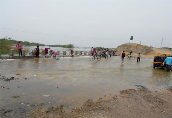 కల్వకుర్తి ఎత్తిపోతల ఆయకట్టు ప్రాంతంలో పర్యటన ముగించుకుని ఇక హైదరాబాద్ తిరిగి రానుండగా, బాగా ఆకర్షించిన దృశ్యం ఒకటి కన్పించింది. నాగర్కర్నూల్ జిల్లా బిజినేపల్లి మండల కేంద్రం సమీపంలో ప్రధాన రహదారికి పక్కన పాలెం చెరువు ఉంది. 0.198 టిఎంసిల నీటి నిలువ సామర్థంతో సుమారు 600 ఎకరాలకు నీరివ్వగల ఆ చెరువు అంచుల దాకా నిండిపోయి ఉంది. తిరిగి వెళ్లేముందు ఎదురైన చివరి చెరువు గనుక దానిని మరింత దగ్గరగా చూడాలనిపించి, ఊరిలోంచి రెండవవైపు వెళ్లగా అది అలుగు పడుతున్నది. అక్కడ స్త్రీలు, పురుషులు, పిల్లలు, అలుగు చూసేందుకు దగ్గరి ఊర్లనుంచి వచ్చిన వారితో అంతా కోలాహలంగా ఉంది. గంగమ్మకు శాంతి చేసేందుకు ఒకరు అప్పుడే పందిని బలిచ్చారు. పాలెం చెరువుకు అలుగు పడటం గతంలో ఏడేళ్ల కిందట 2009లో జరిగిందన్నారు. అపుడది జరిగింది వర్షాలవల్ల. మనిషి ప్రమేయం లేదు. ఈసారి ప్రభుత్వ కృషివల్ల కల్వకుర్తి ఎత్తిపోతల కాలువ లతో అనేక చెరువు లు నిండుతున్నా యి. ఇప్పటికి ఇటు ప్రాంతంలో చెరు వులు, కుంటలు కలిపి 50 వరకు నిండగా మరో 30 వరకు నింపనున్న ట్లు ఇంజనీర్లు చెప్పారు. వాటిలో పాలెం చెరువు ఒకటి. ఇక్కడ అలుగు పడుతున్న మిగులు నీరు గొలుసుకట్టు పద్ధతిలో నాగర్ కర్నూల్ మండలంలోని కేసరి సముద్రం చెరువువైపు పోతూ కన్పించింది.
